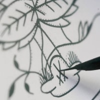 絵付には、大きく分けて「下絵付」(染付)と「上絵付」があります。 下絵付の場合には、絵付は約900度で行なわれる「素焼き」のすぐあとに行なわれます。 多孔質の、レンガのような状態のところに絵付するため、顔料は一気に滲みこみ、修正することができません。 そこで非常に高い技量が必要とされます。 絵付後、釉をかけて約1400-1450度で「本焼成」すると、輝くような色合いが生まれます。 代表的な絵柄はブルーオニオンやブルーオーキッド、ワインリーヴなどです。